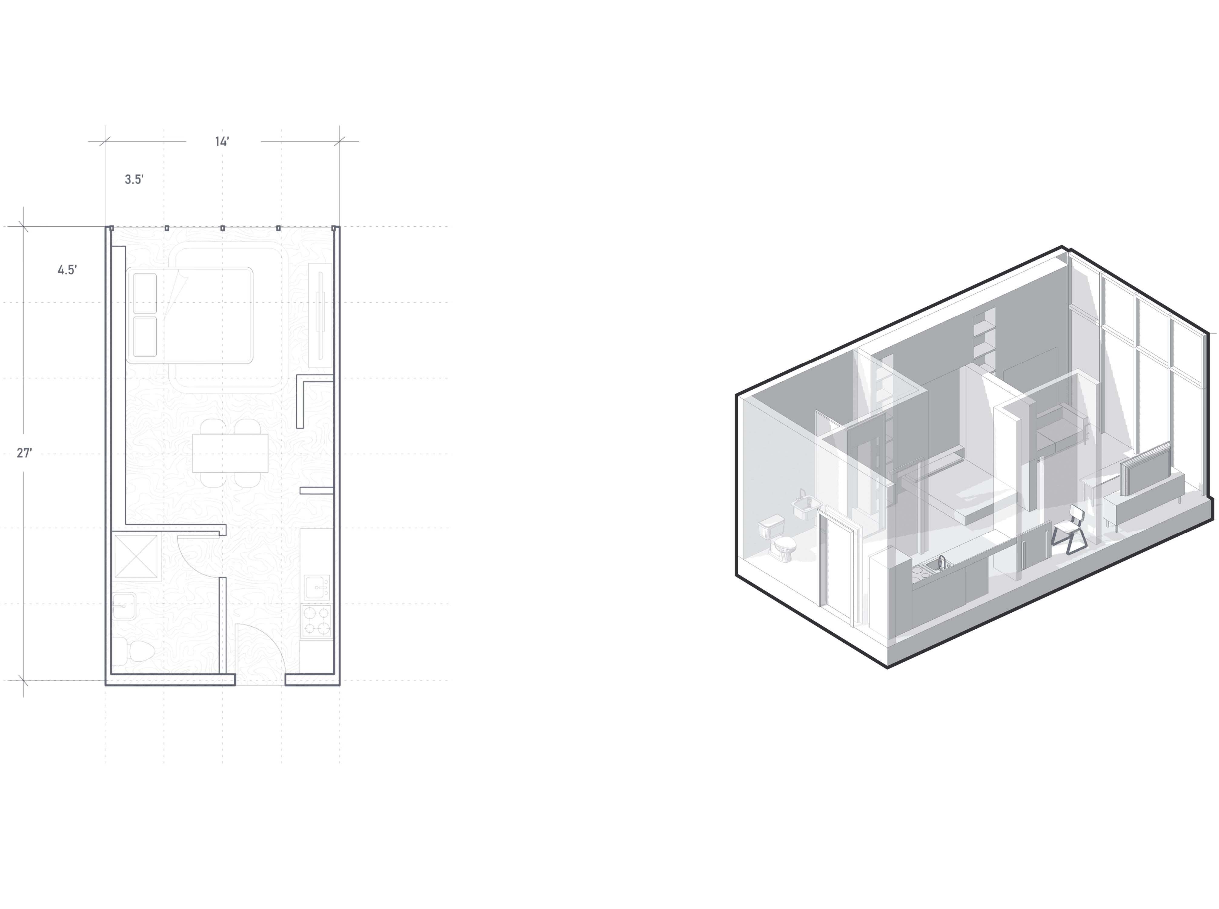 Centered on the concept of implementing flexible living solutions to a stagnant and rigid housing system, Modular Living aims to provide a space that can adapt to the changes and flows of the cycles of life at various scales—from day to day, month to month, and decade to decade. In an effort to undercut the traditional manufacturing costs of housing and reduce vacancy rates, this flexible modular system can adapt to the everyday desires of our occupants while maintaining low levels of variance within prefabricated elements and reducing redundancy when combined with site-specific architectural moments.